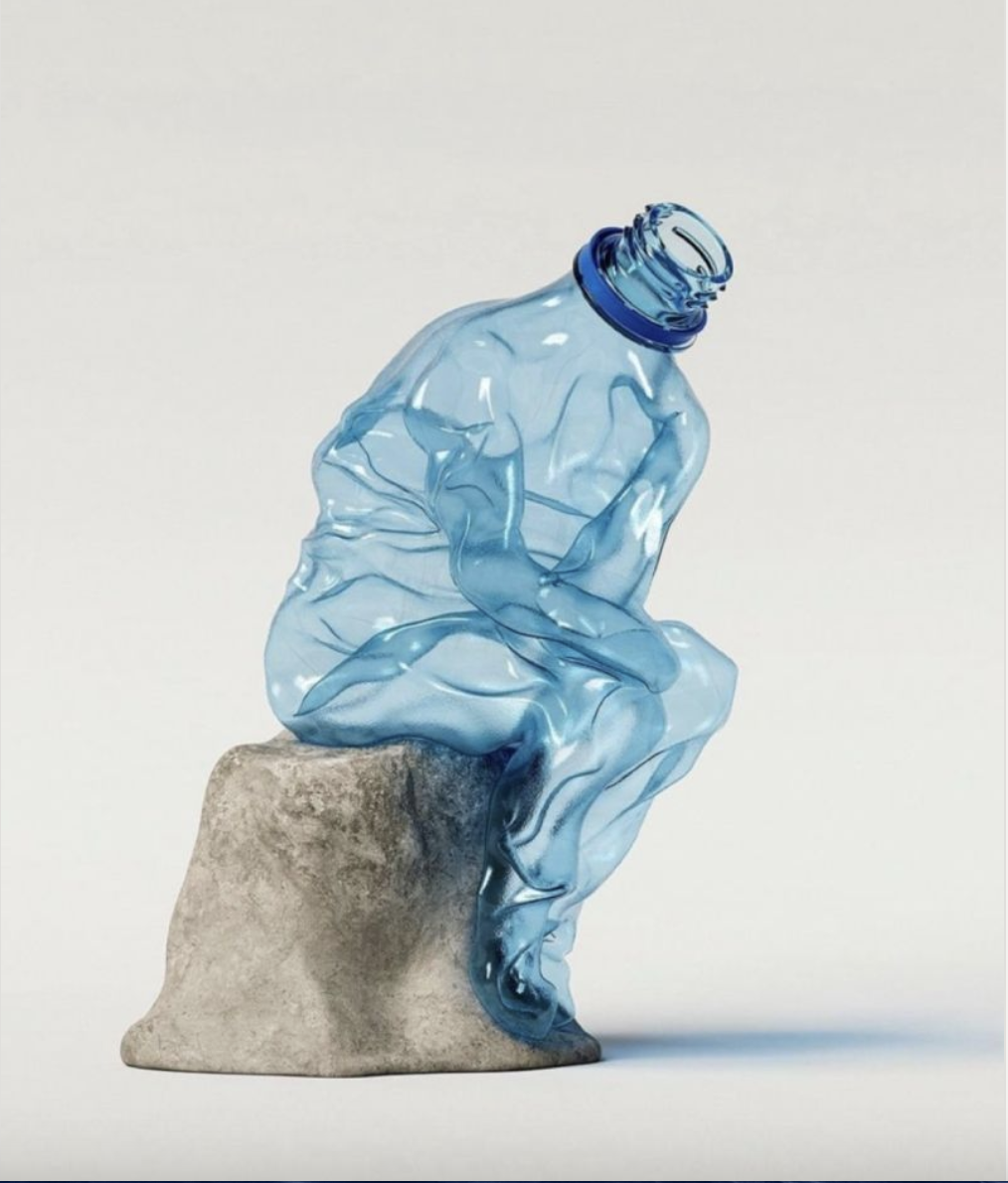 *La belle oeuvre « Rethink Plastic » inspirée du Penseur de Rodin est signée Javier Jaen.